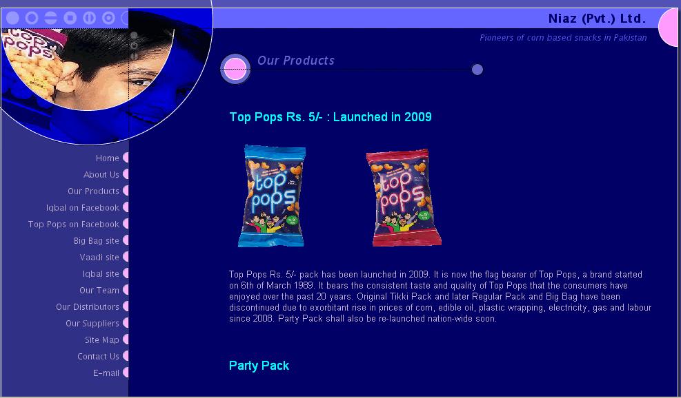After the long time Top pops brand is back in competition. Mix of advertisement tools used by the brands these include the TVC, internet and most important social media. These less cost but selective media come up with good results to date for the brand. On the internet Top Pops has its own website. Its URL is http://www.niaz.com. Website focuses on the two main purpose first one is internet presence among the snack brands as in the self stores and second is make the website interactive for the children. Website have two main section including Fun side aspect and learning and educational aspect which brands wants to start in the future intentions. Non of the Snack brands have such innovative ideas for the future Game plan.